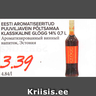 Продукт ароматизированный винный напиток, эстония продавался со скидкой в магазине Maksimarket, Konsum, AjaO в период с 14.12.2016 по 03.01.2017 по цене 3.39 евро.