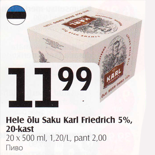 Продукт пиво продавался со скидкой в магазине Selver в период с 20.12.2016 по 26.12.2016 по цене 11.99 евро.