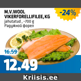 Период кампании: 27.12.2016 - 02.01.2017 Цена: 12.49€ Радужная форельjahutatud, ~700 g M.V. WOOL VIKERFORELLIFILEE, KG