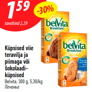 Период кампании: 03.01.2017 - 16.01.2017 Цена: 1.59€ ПеченьеBelvita, 300 g, 5,30/kg Küpsised viie