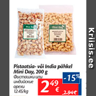 Период кампании: 14.03.2017 - 20.03.2017 Цена: 2.49€ Фисташки или индийские орехиPistaatsia- või India pähkel Mini Day, 200 g