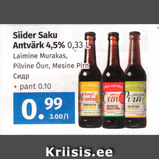 Период кампании: 22.03.2017 - 04.04.2017 Цена: 0.99€ СидрLaimine Murakas, Pilvine Õun, Mesine Pirn Siider Saku