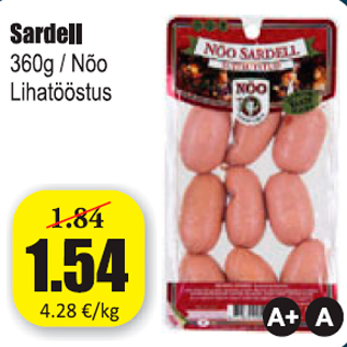 Период кампании: 21.04.2017 - 27.04.2017 Цена: 1.54€ Сардельки360 g / Nõo Lihatööstus Sardell