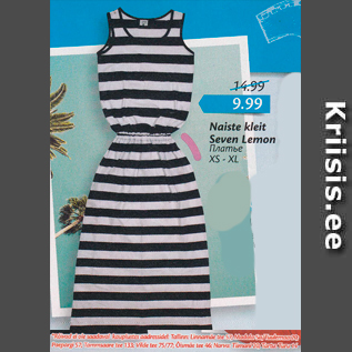 Период кампании: 11.05.2017 - 24.05.2017 Цена: 9.99€ Платье*Rõivad ei ole sadaval kauplustes aadresside: Tallinn: Linnamäe tee 57; Madala 5a/Tulemaa 20; Paepargi 57; Tammsaare tee 133; Vilde tee 75/77; Õismäe tee 46; Narva : Tiimani 20; Tartu: Turu 14 Naiste kleit Seven Lemon, ЧЫ - ЧД