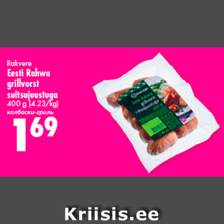 Период кампании: 05.07.2017 - 30.08.2017 Цена: 1.69€ Колбаски-гриль400 g (4.23/kg) Rakvere