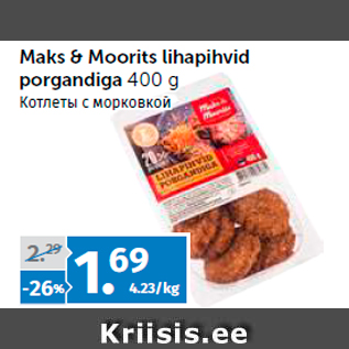 Период кампании: 20.09.2017 - 03.10.2017 Цена: 1.69€ Котлеты с морковкойMaks & Moorits lihapihvid