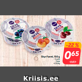 Период кампании: 26.09.2017 - 02.10.2017 Цена: 0.65€ Скир• 4 sorti Skyr Farmi, 150 g