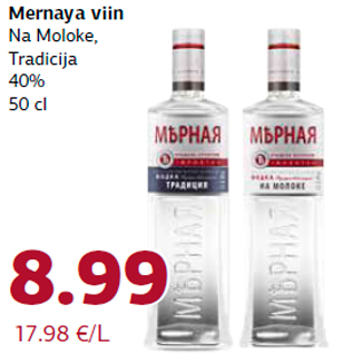 Период кампании: 02.11.2017 - 12.11.2017 Цена: 8.99€ ВодкаNa Moloke, Tradicija, 40%, 50 cl Mernaya viin Kriisis.ee не несёт ответственности за содержание комментариев. Мнение автора комментария может отличаться от мнения kriisis.ee. По возможности, отслеживая комментарии, kriisis.ee оставляет за собой право удалять их без объяснения причин. Если вы заметили неуместный комментарий, пожалуйста сообщите нам о нём.