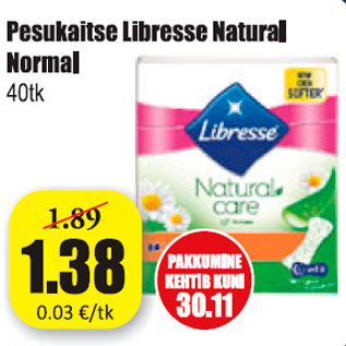 Период кампании: 10.11.2017 - 30.11.2017 Цена: 1.38€ ПрокладкиPesukaitse Libresse Natural Normal 40 tk