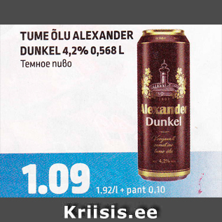 Продукт темное пиво продавался со скидкой в магазине Maksimarket, Konsum в период с 28.11.2017 по 04.12.2017 по цене 1.09 евро.