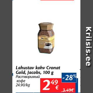 Период кампании: 28.11.2017 - 04.12.2017 Цена: 2.49€ Растворимый кофеLahustuv kohv Cronat Gold, Jacobs, 100 g