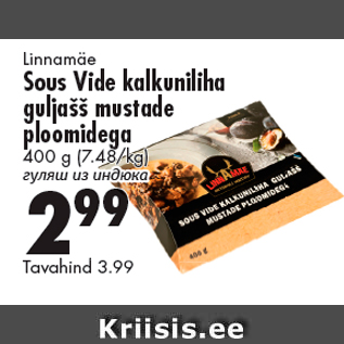Период кампании: 03.12.2017 - 03.01.2018 Цена: 2.99€ Гуляш из индюка400 g (7.48/kg) Linnamäe
