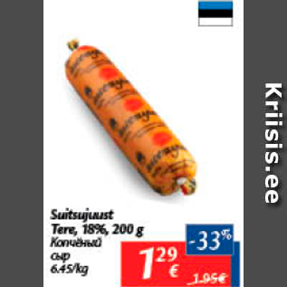 Период кампании: 05.12.2017 - 11.12.2017 Цена: 1.29€ Копченый сырSuitsujuust Tere, 18%, 200 g
