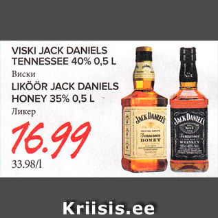 Период кампании: 13.12.2017 - 02.01.2018 Цена: 16.99€ ВИСКИ; ЛИКЕРVISKI JACK DANIELS TENNESSEE 40%, 0,5 L; LIKÖÖR JACK DANIELS HONEY 35%, 0,5 L Kriisis.ee не несёт ответственности за содержание комментариев. Мнение автора комментария может отличаться от мнения kriisis.ee. По возможности, отслеживая комментарии, kriisis.ee оставляет за собой право удалять их без объяснения причин. Если вы заметили неуместный комментарий, пожалуйста сообщите нам о нём.