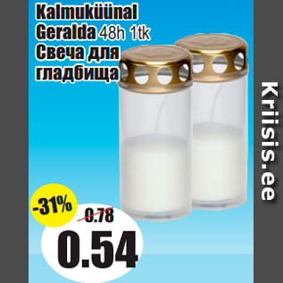 Период кампании: 18.12.2017 - 31.12.2017 Цена: 0.54€ Свеча для гладбищаKalmuküünal