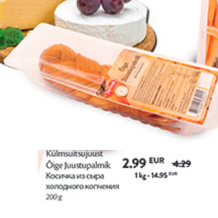 Период кампании: 04.01.2018 - 17.01.2018 Цена: 2.99€ Косичка из сыра холодного копченияKülmsuitsujuust Õige Juustupalmik 200 g