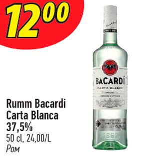 Период кампании: 09.01.2018 - 22.01.2018 Цена: 12.00€ Ром50 cl, 24,00/L Rumm Bacardi Carta Blanca 37,5% Kriisis.ee не несёт ответственности за содержание комментариев. Мнение автора комментария может отличаться от мнения kriisis.ee. По возможности, отслеживая комментарии, kriisis.ee оставляет за собой право удалять их без объяснения причин. Если вы заметили неуместный комментарий, пожалуйста сообщите нам о нём.