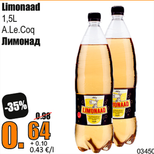 Период кампании: 22.01.2018 - 28.01.2018 Цена: 0.64€ Лимонад1,5L A.Le.Coq Limonaad
