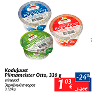 Период кампании: 10.04.2018 - 16.04.2018 Цена: 1.03€ Зерненый творогerinevad Kodujuust Piimameister Otto, 330 g
