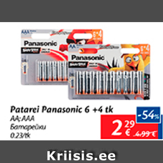Период кампании: 17.04.2018 - 23.04.2018 Цена: 2.29€ БатарейкиAA; AAA Patarei Panasonic 6 + 4 tk