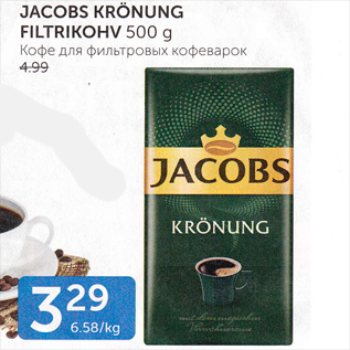 Продукт кофе для фильтровых кофеварок продавался со скидкой в магазине Maksimarket, Konsum, AjaO в период с 01.05.2018 по 31.05.2018 по цене 3.29 евро.
