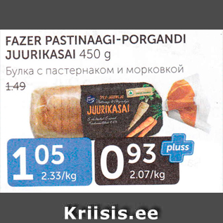 Период кампании: 01.05.2018 - 07.05.2018 Цена: 0.93€ БУЛКА С ПАСТЕРНАКОМ И МОРКОВЬЮFAZER PASTINAAGI-PORGANDI JUURIKASAI 450 G