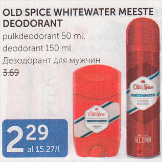 Период кампании: 05.06.2018 - 11.06.2018 Цена: 2.29€ ДЕЗОДОРАНТ ДЛЯ МУЖЧИНpulkdeodorant 50 ml, deodorant 150 ml OLD SPICE WHITEWATER MEESTE DEODORANT