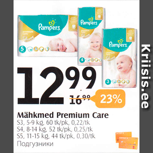 S5, 11-15 kg, 44 tk/pk, 0,30/tk Mähkmed Premium care