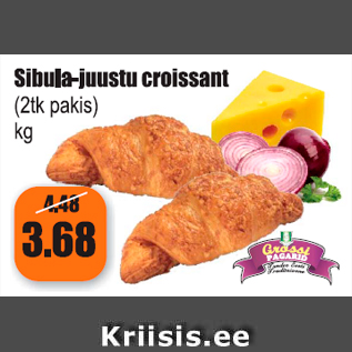 Период кампании: 31.08.2018 - 06.09.2018 Цена: 3.68€ Круассан луково-сырный(2 tk pakis) kg Sibula-juustu croissant