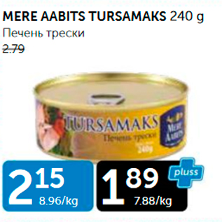 Период кампании: 04.09.2018 - 10.09.2018 Цена: 1.89€ ПЕЧЕНЬ ТРЕСКИMERE AABITS TURSAMAKS 240 G
