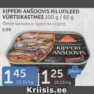 Период кампании: 11.09.2018 - 17.09.2018 Цена: 1.25€ ФИЛЕ КИЛЬКИ В ПРЯМОМ СОУСЕ100 G / 65 G KIPPERI ANŠOOVIS KILUFILEED VÜRTSIKASTMES