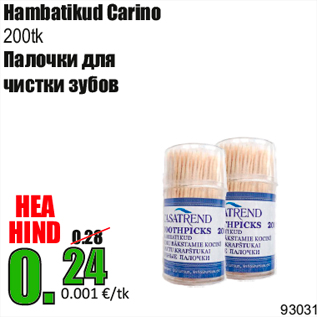 Период кампании: 24.09.2018 - 30.09.2018 Цена: 0.24€ Палочки для чистки зубовHambatikud Carino