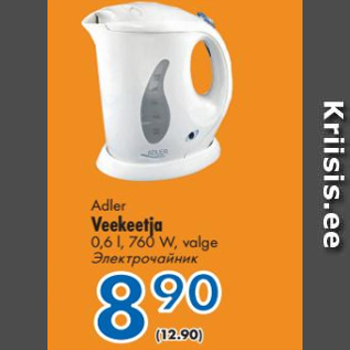 Период кампании: 04.10.2018 - 14.10.2018 Цена: 8.90€ ЭлектрочайникVeekeetja