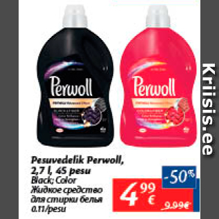 Период кампании: 06.11.2018 - 12.11.2018 Цена: 4.99€ Жидкое средство для стирки бельяBlack; Color Pesuvedelik Perwoll, 2,7 l, 45 pesu