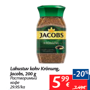 Период кампании: 13.11.2018 - 19.11.2018 Цена: 5.99€ Растворимый кофеLahustuv kohv Krönung,