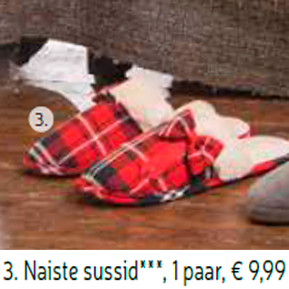 Период кампании: 20.11.2018 - 17.12.2018 Цена: 9.99€ Женские тапочки ******Pakkumine saadaval, Pärnu Kaubamajaka, Narva Fama, Laagri, Habersti, Tartu Lõunakeskuse, Lasnamäe Centrumi ja Sõpruse Hypermarketites Naiste sussid***