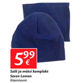 Период кампании: 27.11.2018 - 03.12.2018 Цена: 5.99€ КомплектSalli ja mütsi komplekt Seven Lemon