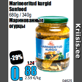 Период кампании: 25.02.2019 - 03.03.2019 Цена: 0.88€ Маринованные огурцы680g / 340g Marineeritud kurgid