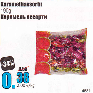 Период кампании: 25.03.2019 - 31.03.2019 Цена: 0.38€ Карамель ассортиKaramelliassortii 190 g