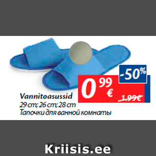 Период кампании: 26.03.2019 - 01.04.2019 Цена: 0.99€ Тапочки для ванной комнаты29 cm; 26 cm; 28 cm Vannitoasussid