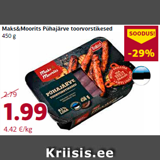 Период кампании: 04.04.2019 - 14.04.2019 Цена: 1.99€ Сырые колбаски Maks&Moorits 450 гMaks&Moorits Pühajärve toorvorstikesed