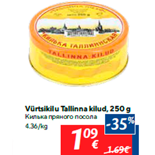 Период кампании: 16.04.2019 - 22.04.2019 Цена: 1.09€ Килька пряного посолаVürtsikilu Tallinna kilud, 250 g