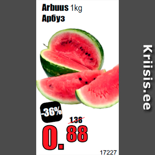 Период кампании: 24.04.2019 Цена: 0.88€ АрбузArbuus 1kg