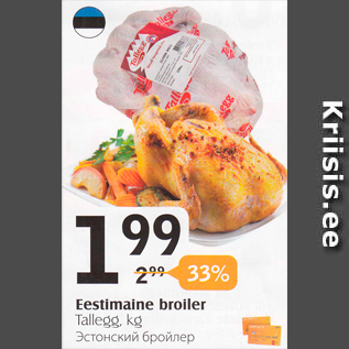 Период кампании: 23.04.2019 - 29.04.2019 Цена: 1.99€ Эстонский бройлерtallegg, kg Eestimaine broiler