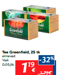Период кампании: 23.04.2019 - 29.04.2019 Цена: 1.19€ Чайerinevad Tee Greenfield, 25 tk