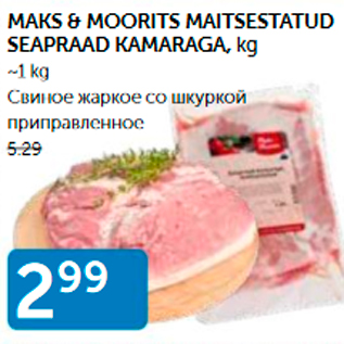 Период кампании: 07.05.2019 - 13.05.2019 Цена: 2.99€ СВИНОЕ ЖАРКОЕ СО ШКУРКОЙ ПРИПРАВЛЕННОЕ~1 KG MAKS&MOORITS MAITSESTATUD SEAPRAAD KAMARAGA, KG