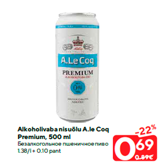 Период кампании: 04.06.2019 - 10.06.2019 Цена: 0.69€ Безалкогольное пшеничное пивоAlkoholivaba nisuõlu A.le Coq