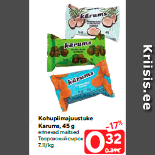 Период кампании: 18.06.2019 - 24.06.2019 Цена: 0.32€ Творожный сырокerinevad maitsed Kohupiimajuustuke