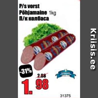 Период кампании: 18.07.2019 Цена: 1.98€ П/к колбасаP/s vorst Põhjamaine 1 kg