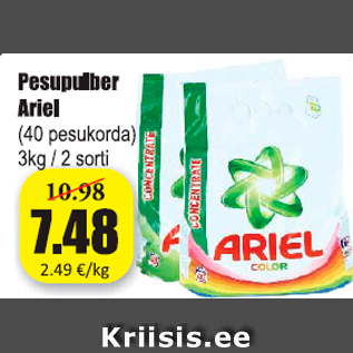 Период кампании: 02.08.2019 - 08.08.2019 Цена: 7.48€ Стиральный порошок Ariel(40 pesukorda) 3 kg / 2 sorti Pesupulber Ariel